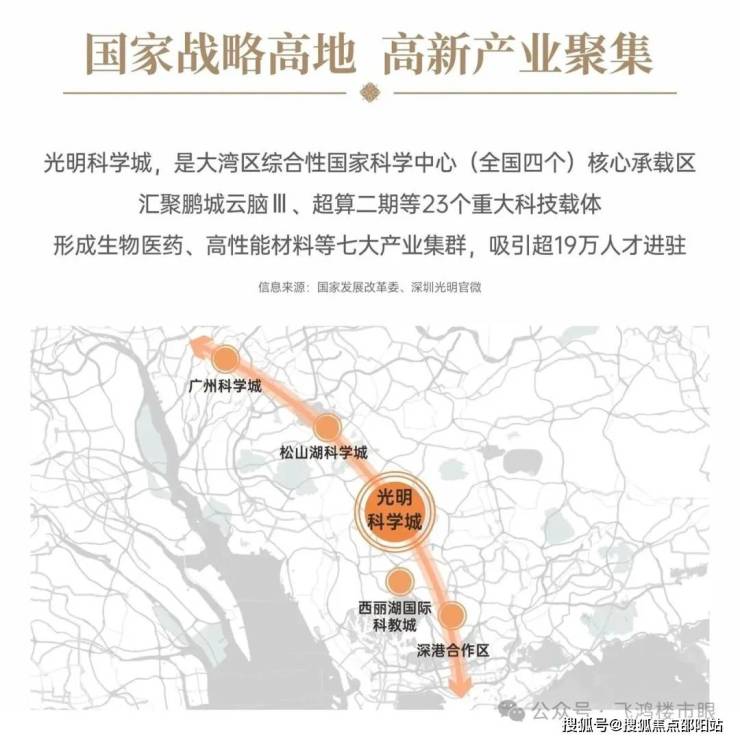光明科学城,是大湾区综合性国家科学中心(全国四个)核心承载区,汇聚鹏城云脑Ⅲ、超算二期等23个重大科技载体,形成生物医药、高性能材料等七大产业集群,吸引超19万人才进驻。