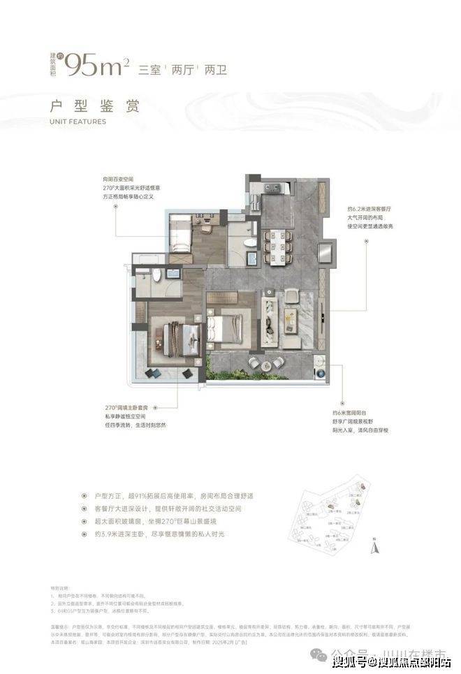 观山海家园深谙不同家庭的居住需求差异,在户型设计上精雕细琢,打造出多款适配性强的优质户型,其中建面约 95㎡的 3 房 2 卫户型,凭借科学的空间规划与贴心的细节设计,成为众多家庭的理想之选。