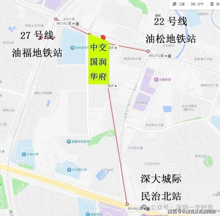 在龙华区民治街道工业路与中华路交叉口东南侧,一座占据龙华超级商圈核心位置的品质住宅正蓄势待发——中交国润华府。作为深中龙华学校单校划片学区 ,项目毗邻深圳中学龙华学校,距离龙华地标性商圈壹方天地仅300米 ,同时紧邻在建的22号线油松站和规划中的27号线油福站,距离都在250米左右 ,未来还将与深大城际民治北站(距离约800米)形成"三线护体"的交通格局 。