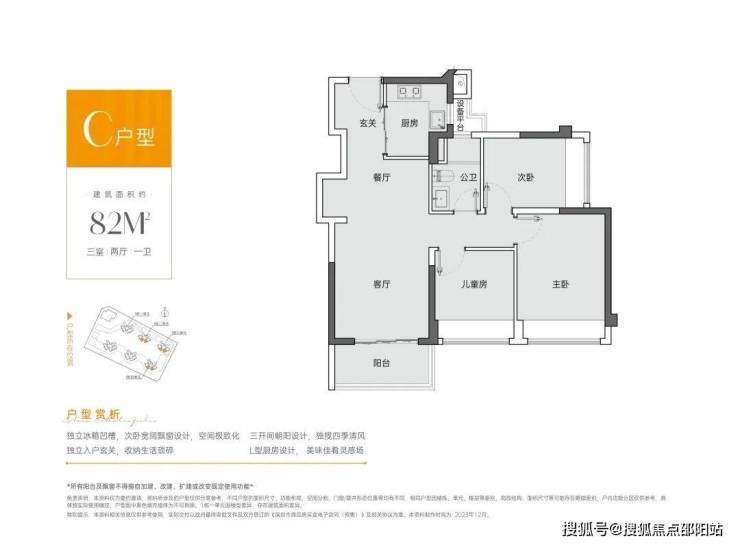 独立冰箱凹槽,宽阔飘窗设计,空间极致化