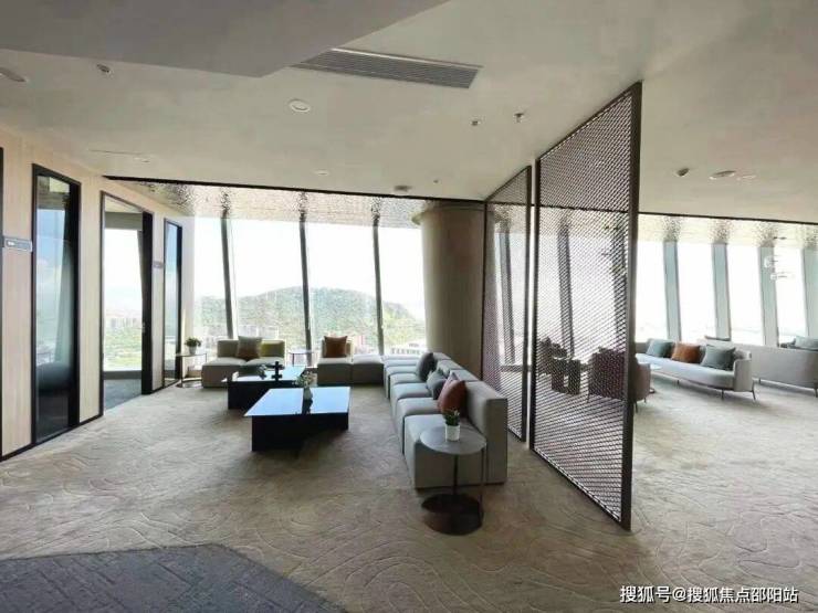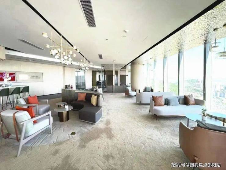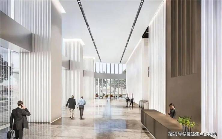约11米层高,融合“光辉未来”设计理念,以充满能量的线性符号和天花模块群设计,打造核心大堂气派形象。