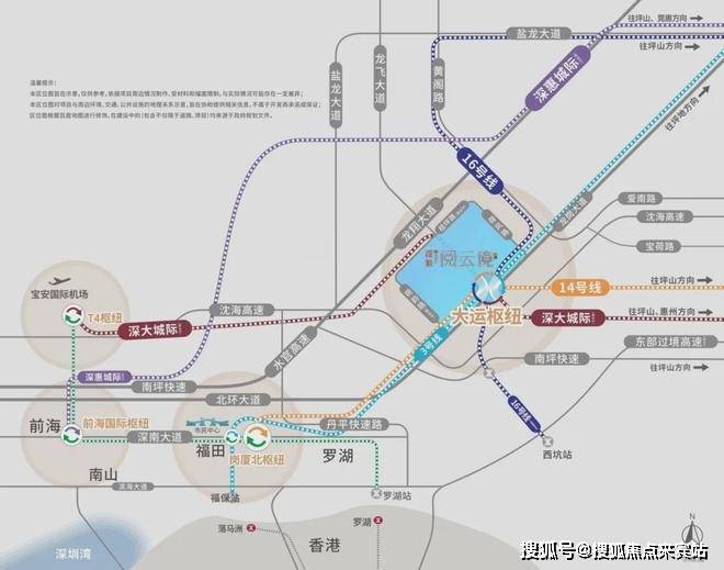 这里汇聚了3号线、14号线、16号线以及正在建设中的深大城际,形成了一个四线交汇的交通枢纽。