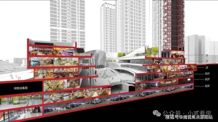 其中商业综合体包括地下三层商业MALL和地上三层公园购物街区。
