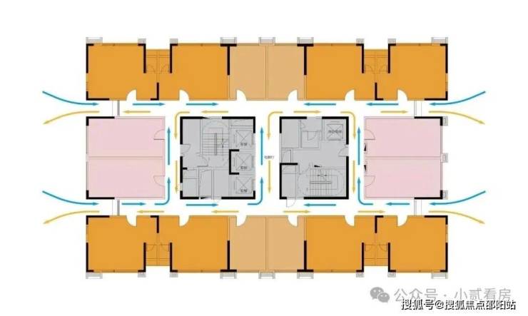 摒弃传统单过道,采用双环通走廊,极大提升通风采光