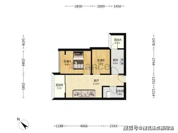 两室一厅一厨一卫两阳台