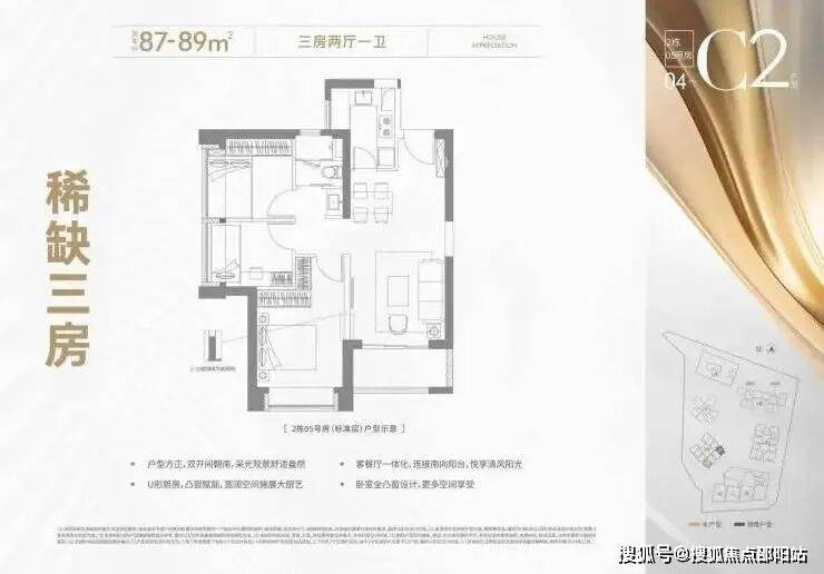 87-89㎡(三房一卫)稀缺精致3房户型,家庭生活一步到位!