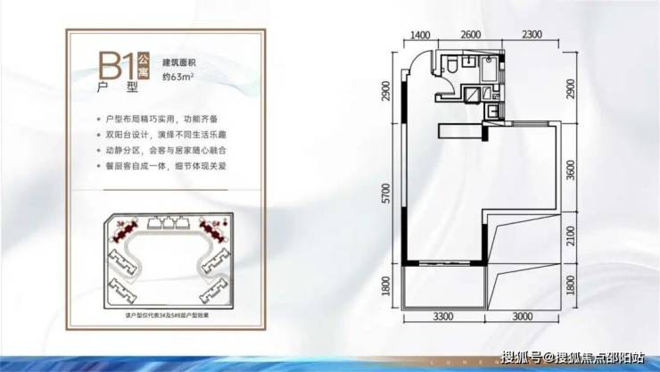 B1户型:63㎡1房2厅1卫