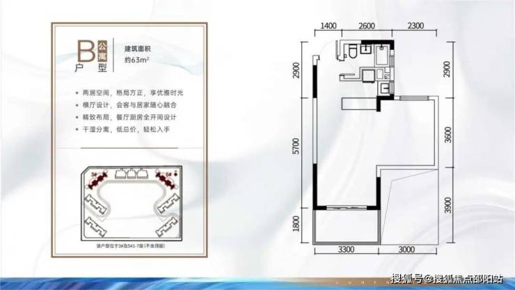 B户型:63㎡2房2厅1卫