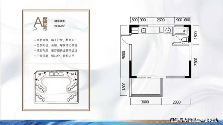 A户型:46㎡1房1厅1卫