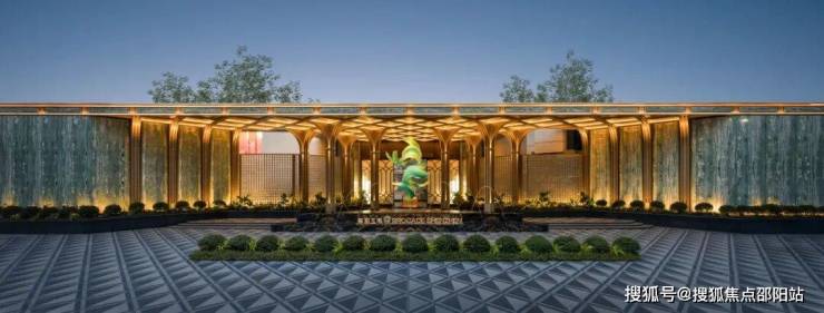 归家的第一重仪式,由约51米恢弘跨度的「金风玉廊」铺陈。20根高达约7米的香槟金立柱巍峨耸立,序列感与力量感交织,形成极具视觉冲击力的城市界面。