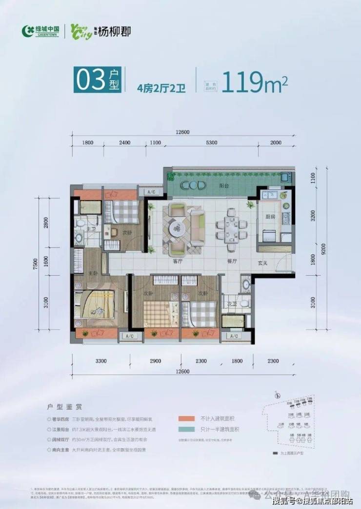在售产品:建面约101-119㎡三四房
