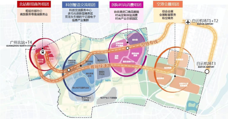 《广州十四五发展规划》重点打造空铁枢纽型都市区、广州北站商务区;加快建设白云机场至广州北站快速轨道交通,实现8分钟即可直达白云机场,增设T4航站楼,带动花都空港经济区发展。