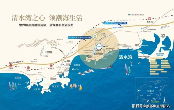 2⃣项目地处北纬18°以南,距三亚市区直线距离约45公里,尊踞大三亚醇熟生活圈;位于清水湾度假区中央核心,坐拥清水湾万亩文旅醇熟配套,紧邻陵水黎安国际教育创新试验区,致力于打造清水湾片区产品标杆。