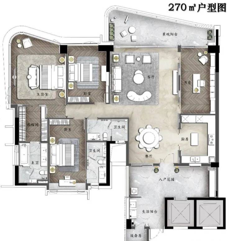 【洋房户型】140㎡-270㎡四房双主套