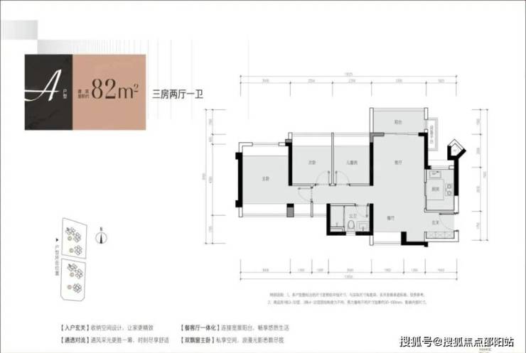 三房两厅一卫82㎡总价270—316万