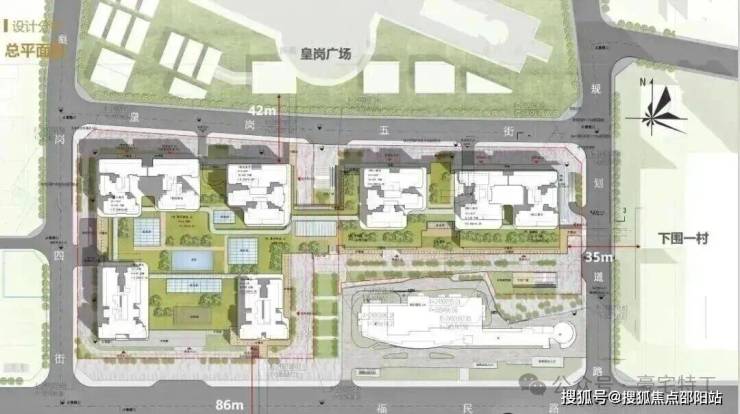 项目一期由福民路、皇岗二街、皇岗四街、皇岗五街围合而成,总占地面积约3.14万㎡,总建筑面积约27.3万㎡,住宅建面约为20.3万㎡,商业建面约为7万㎡;整个项目以“立于城市中轴,缔造时代标杆”为核心理念,旨在构建一个融合现代与历史人文特色的城市大综合体。