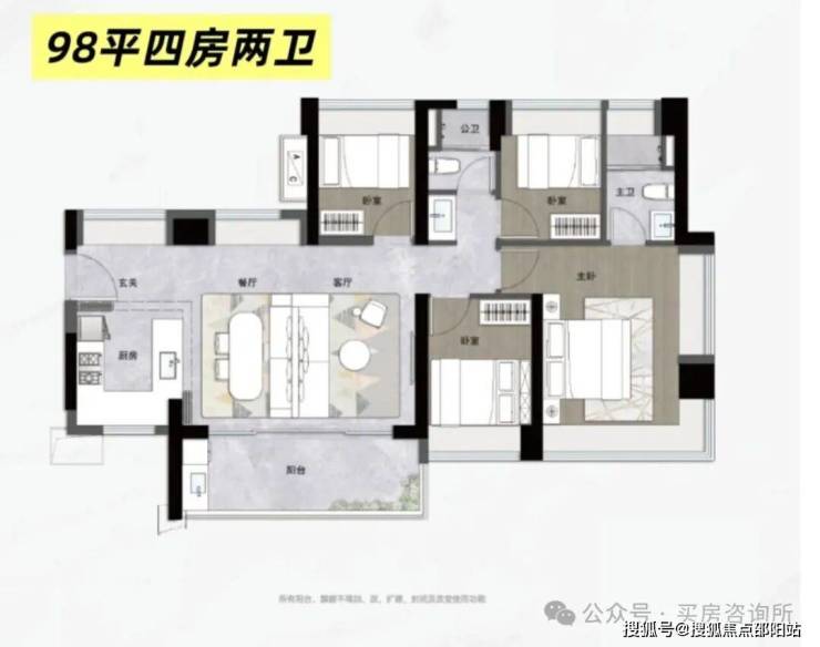 项目最大亮点就是70㎡做三房,96㎡做四房以及大部分户型无遮挡看阳台山公园景观不错