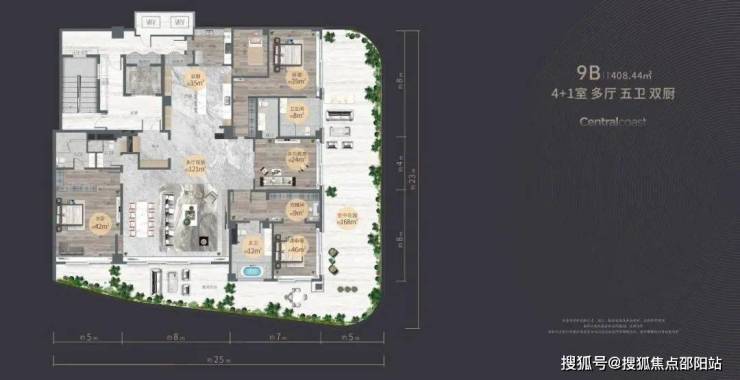 9B 【408.44㎡ 4+1室 多厅 五卫 双厨】