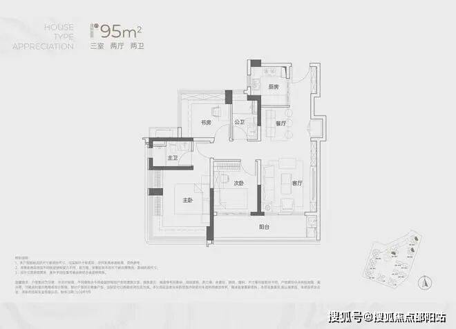 建面约95㎡3房2卫