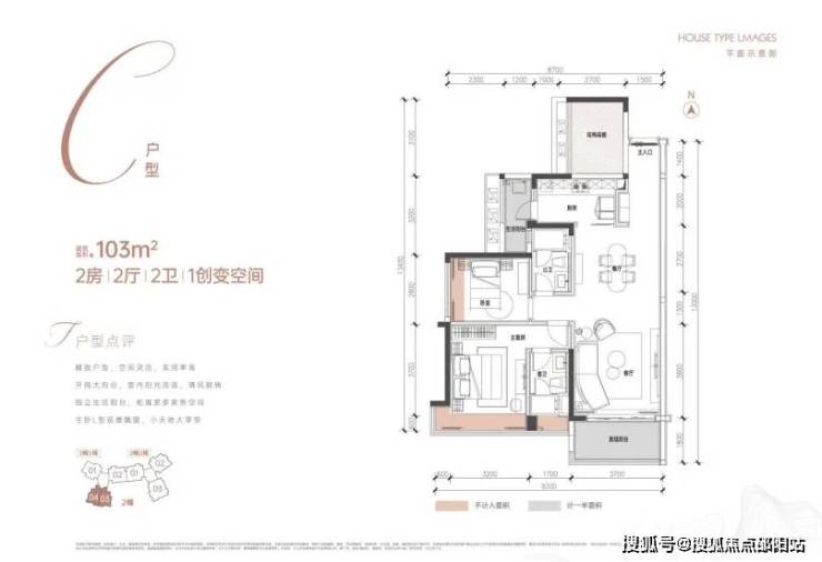 我们先看小面积的建面约103㎡2房+1创变空间。