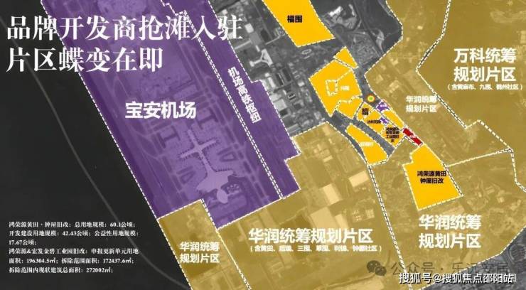 华润(草围旧村及南片区城市更新单元)、鸿荣源(钟屋黄田旧村更新项目)、宏发(黄田金碧片区城市更新旧改项目,在建,有大仟里商业综合体)等房企巨头均已抢滩入驻,助力片区蝶变,大体量城市更新革新片区价值,未来将不断丰富项目周边的文体、商业配套,进一步提升片区的生活品质。