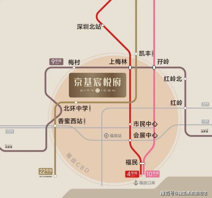 →三轨交汇:地铁9号/4号/22号线(在建中)三轨交汇,直距约300米上梅林站;22号线开通后,直抵香蜜湖