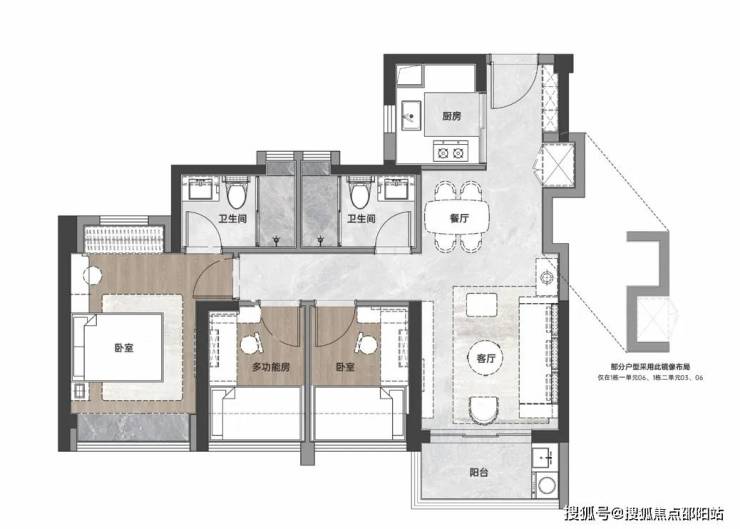 建面约73-75㎡3房2厅1卫