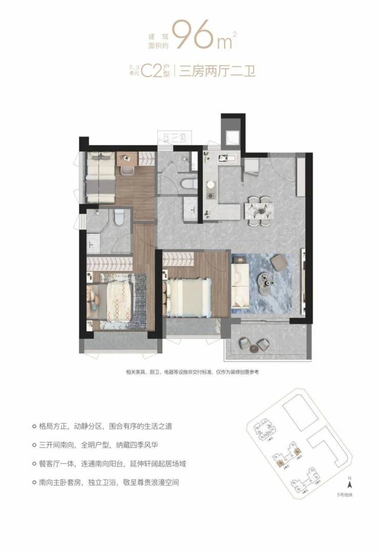 项目最先推出05地块一期,含3栋住宅楼,分5个单元,为5栋一至五单元,共1038套住宅!本次优先推出5栋的一单元和四单元,约600套,面积69-87-96-125㎡2-4房,部分楼栋已经封顶,预计2027年3月份精装修交楼!