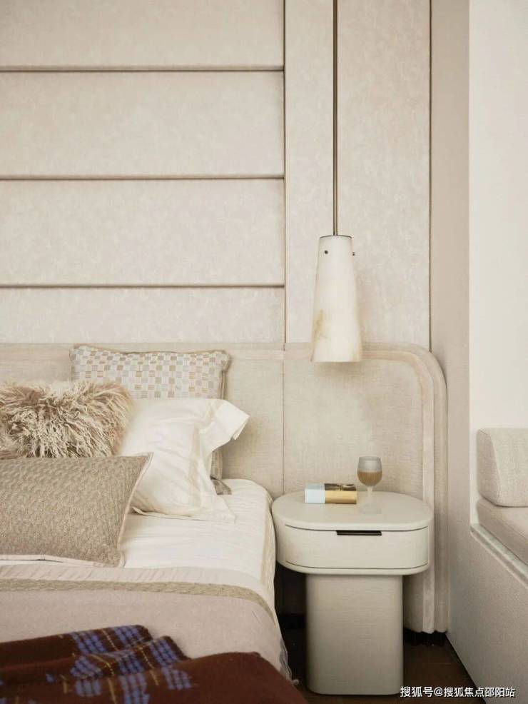主卧270°超尺度转角飘窗让空间的功能构成更加饱满丰富,既可以成为观景的休闲区,也可以成为女主人日常的梳妆区。