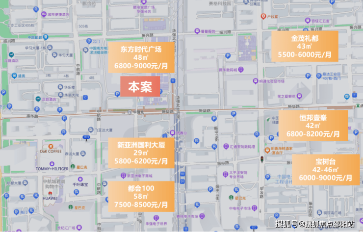 项目周边商办产品主流租金水平可达150-200元/㎡/月,一房可租6000-9000元/月,华强北有着高质量、庞大的租赁客群,稳定的租金,核芯地段优质物业注定倍受市场资金热捧。