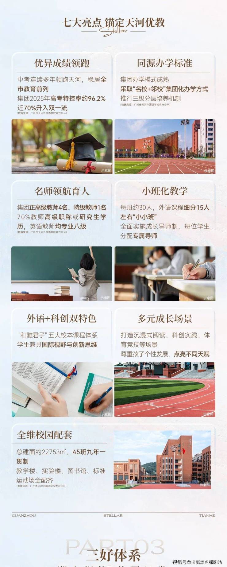 教育王牌:配建 6 班公办幼儿园,义务教育纳入天河外国语智谷学校(九年一贯制公办,2025 年 9 月已开学),业主子女入户一致即可入读,实现目送式上学;周边近邻执信中学(天河校区)、华阳奥体东校区等优质学府,12 年教育闭环无忧。