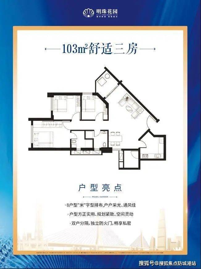 明珠花园提供了93-103平方米的舒适三房户型,采用“米”字型布局,户户分隔,确保私密性和空间利用率。每个户型都经过精心设计,注重实用率和居住舒适度,超80%的使用率更是体现了其卓越的设计理念。所有房源均为精装交付,即买即办房产证,幸福无需等待。