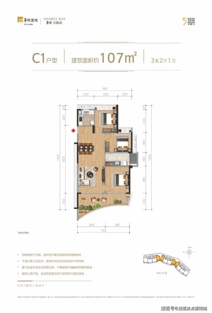 约107㎡三室两厅一卫○ 宽阔观景阳台,煮茶/写生皆有美景相伴○ 约9m餐客厅,为家人的休闲娱乐扩容○ 主卧连接景观阳台,晨听山风夜赏星○ 宜居三房户型,与家人共享山海旅居美好