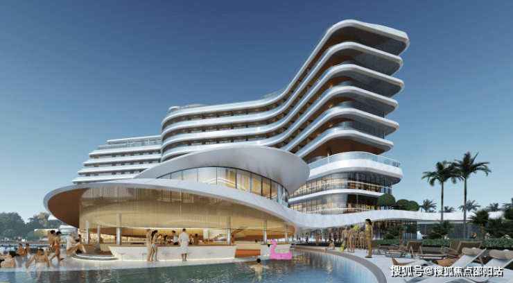 项目建设了约7.6万㎡的城市综合配套中心,不仅规划有五星级度假酒店、蝴蝶之眼亲水餐厅等景区豪配设施,还引进度假别墅酒店及康养度假中心。