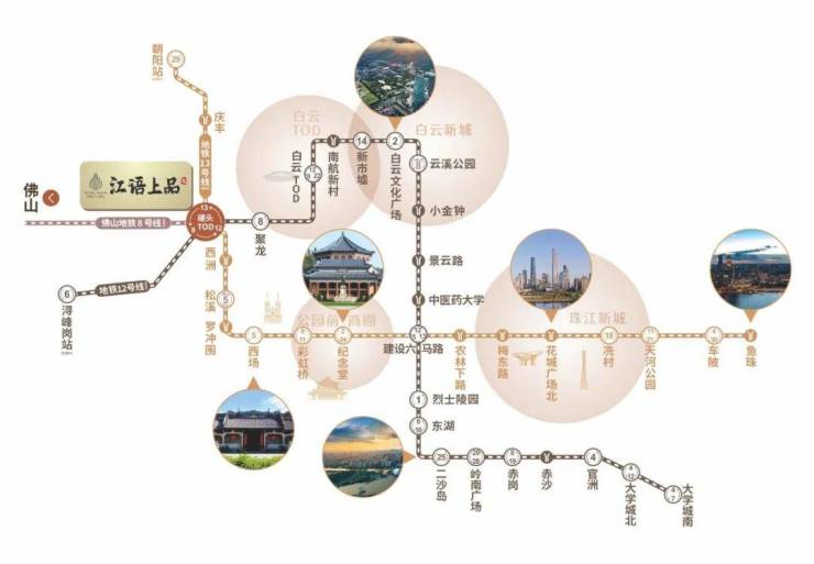 江语上品苑择址珠江西航道,占据珠江最后一公里黄金江景风光,仅约60米亲江距离,集萃空前绝后的天赋,精著千年珠江的封藏极作。以TOD近百万大城之势,开创白云乃至全广州奢宅的崭新时代。