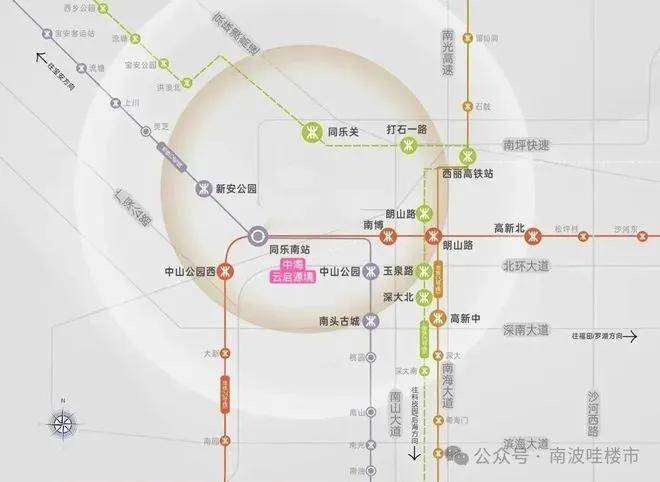 位置:南山区北环大道北侧,紧邻中山公园,与宝安交界(豪方天际旁),步行300米直达地铁12号线同乐南站,未来还有15号线双地铁口加持。
