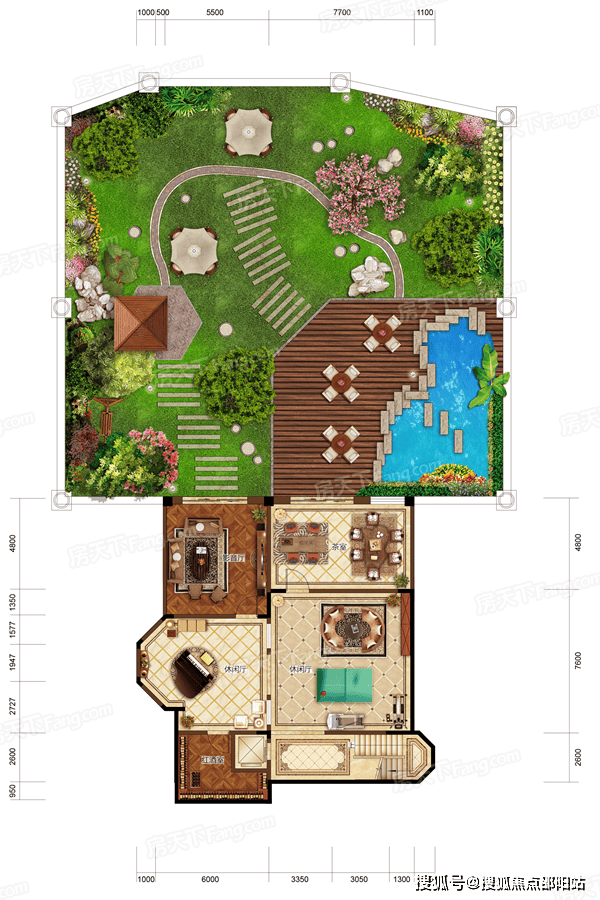 户型五:777㎡ 户型 花园面积:1000-1597㎡