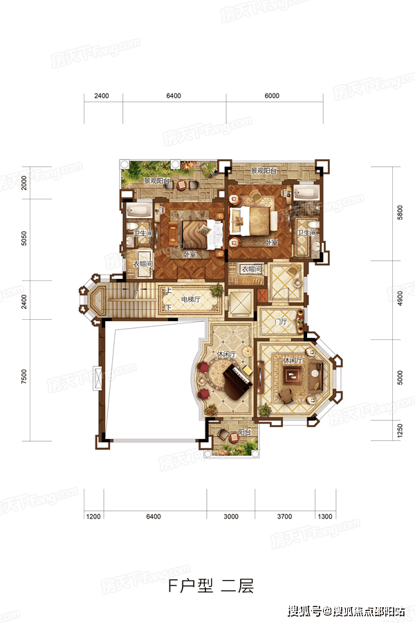 户型六:1235㎡户型 花园面积:2406-2850㎡