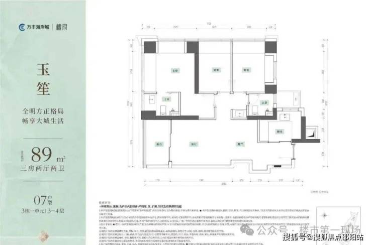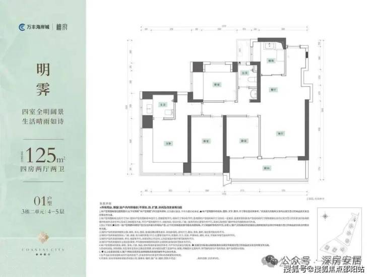 这次首推的万丰海岸城檀府A313-1568地块,总占地面积约1.89万㎡,总建筑面积约17.95万㎡,计容建筑面积约12.87万㎡,容积率6.79,绿化率40%,共由4栋45-47层高的住宅组成,其中2栋1单元住宅47F,2栋2单元住宅45F,3栋1单元住宅45F,3栋2单元住宅46F,4栋是1所12班制幼儿园。
