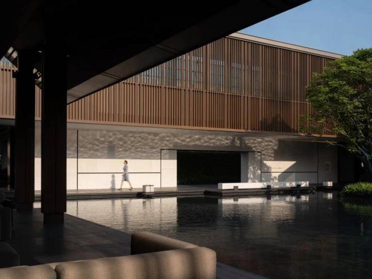 挑高艺廊、时尚健身空间等功能多样,室内外景观相连,空间序列感与体验感自由切换,服务社群,追求平衡静谧体验。