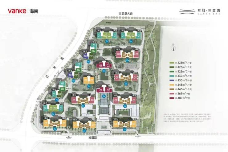 项目位于三亚湾海田路 607 号,开发商是万科地产,占地 82 亩,有 16 栋小高层,容积率 2.5,绿化率 40%,总层高 17 层,层高 3 米,由万科物业提供服务,产权 70 年,2025 年年底交房。