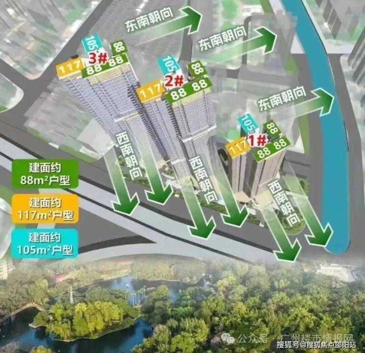 全新3栋已上新,主推建面约88-105-117㎡四房,88平三房共有3条梯腿,有东南向和西南向,105平和117平各有1条梯腿,105为东南,117是西南。