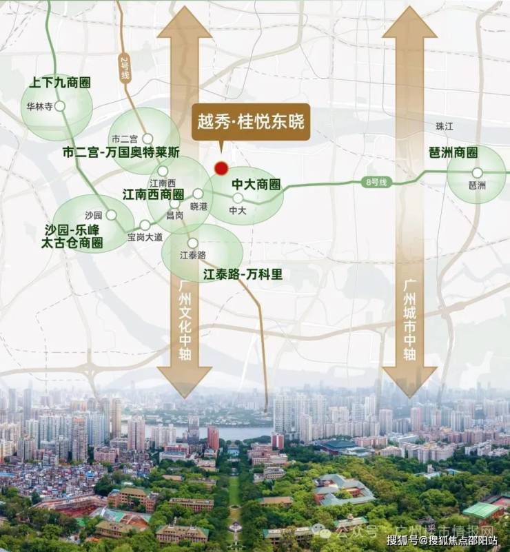 交通配套:距离地铁8号线晓港地铁站仅0.6km,8号线可以直达琶洲、客村等商务圈,一站到昌岗可以换乘2号线,到南站、白云新城也比较方便,三站客村换乘3号线,到珠江新城、体育西路,能实现40min内通勤。