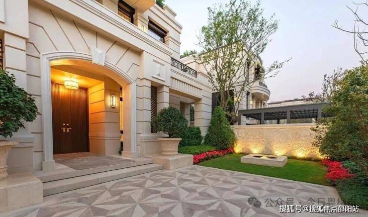 穿过园林,雅致的别墅便映入眼帘。源于葡萄牙皇室御用的葡米黄石,镶嵌在建筑外墙,每一块石材,均采用黄金比例,历经四轮苛求与优化。