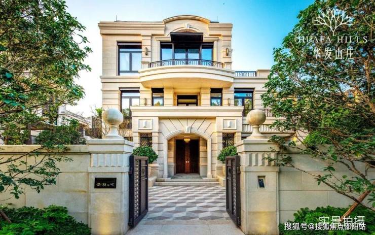 ②华发山庄的别墅建筑外墙源自葡国皇室御用的葡米黄石,全屋外立面都覆盖葡米黄石,别墅后院栏杆也几乎全以葡米黄石纯手工雕琢,只为呈现最终的历史厚重感。