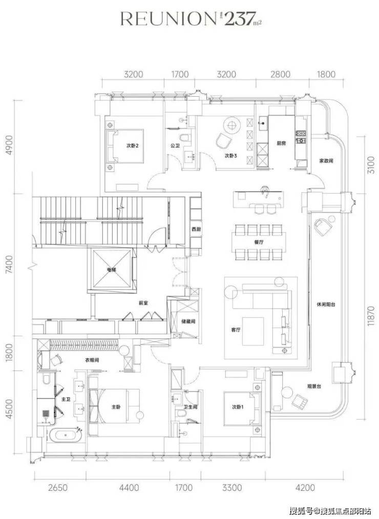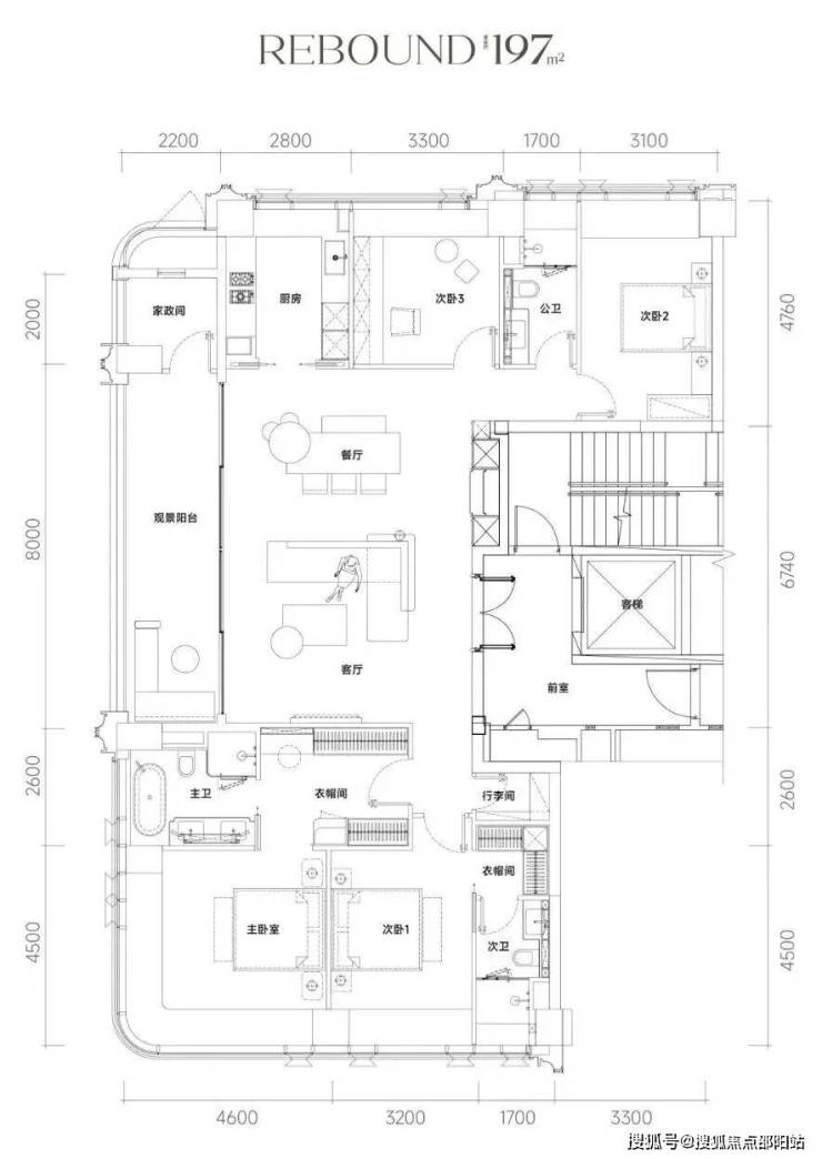 此次首开的是1栋小高层住宅,仅推出约42套建面约197-237㎡ 的四房大平层。