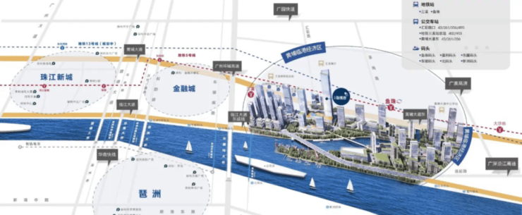 凭借黄埔大道、临江大道双主干道的交通优势,项目可快速通达全城,而其紧邻珠江的滨江区位,则为打造国际化滨水经济带提供了得天独厚的条件。