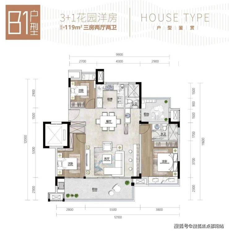 ▲户型:108-135㎡3+1房,一梯两户纯板房