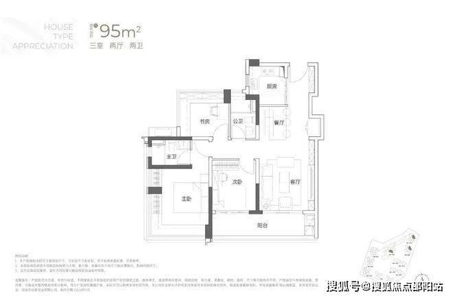 建面约95㎡3房2厅2卫