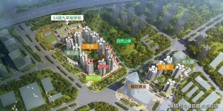 项目自带两所幼儿园之外,社区还将打造一所54班公立九年一贯制学校